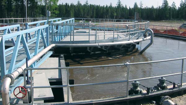 Sewage liquor is run into deep tanks with diffuser blocks attached to the floor. These are like the diffuser blocks used in tropical fish tanks but on a much larger scale. Air is pumped through the blocks and the curtain of bubbles formed both oxygenates the liquor and also provide the necessary stirring action.